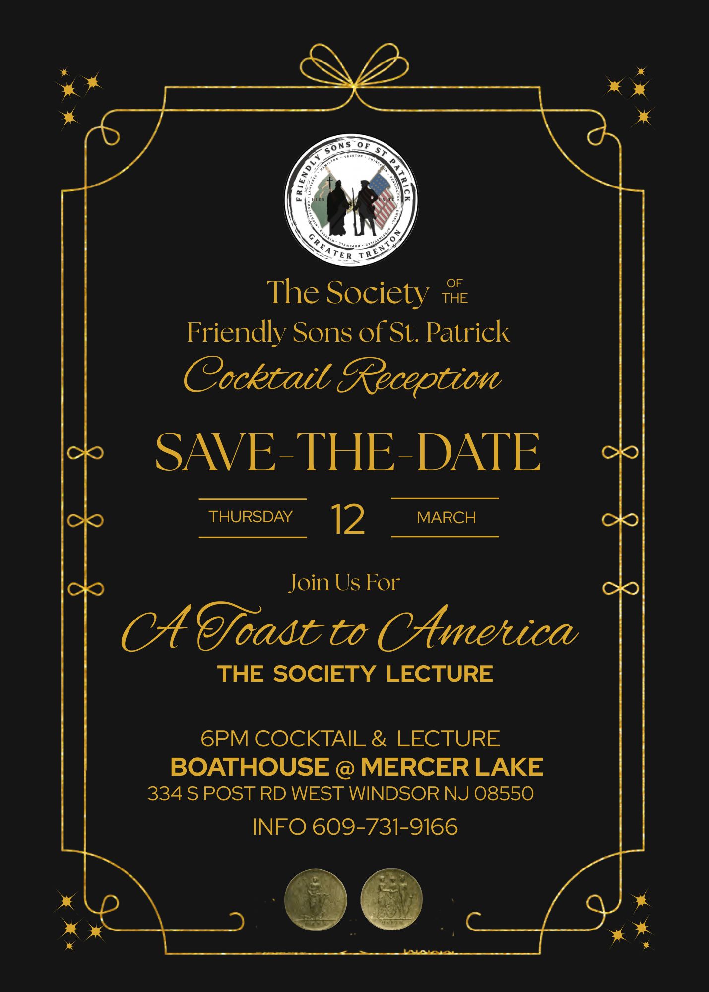 SAVE-THE-DATE…On Thursday, March 14, the Society of the Friendly Sons of St. Patrick – Greater Trenton invites you to a special gathering to toast America’s 250th Anniversary. Step back in time as General George Washington and General Stephen Moylan take the stage—joined by State Historian Roger Williams, who will vividly recreate this historic moment. Enjoy an elegant cocktail reception filled with rich history, live music, delicious food, and fine drinks. More details to follow—stay tuned!